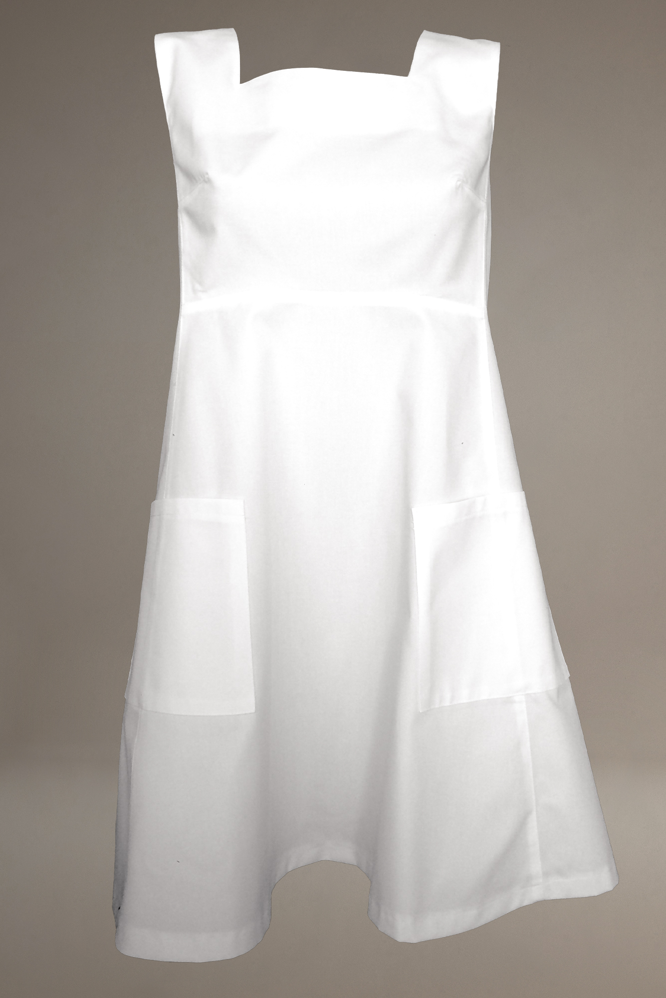 Sol-Apron with two front pockets Closing in the middle of the back with 4 square metal press studs. Available in black and white